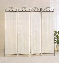4 Panel Elegant Ivory Fabric Metal Frame Room Divider Screen. This is a brand new Pleated Ivory Fabric Room Divider/Screen in Wrought Iron Frame in Black and Gold Butterfly Decor. Item is designed to be practical in use and elegant to beautify your home decor. Item may require some simple assembly. Dimensions Measure: 79"W x 69 3/4"H (Each Section of Screen measures approx. 19 1/2" in Width)