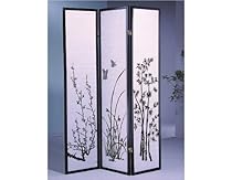 3-Panel Flower Design Wood Shoji Screen / Room Divider